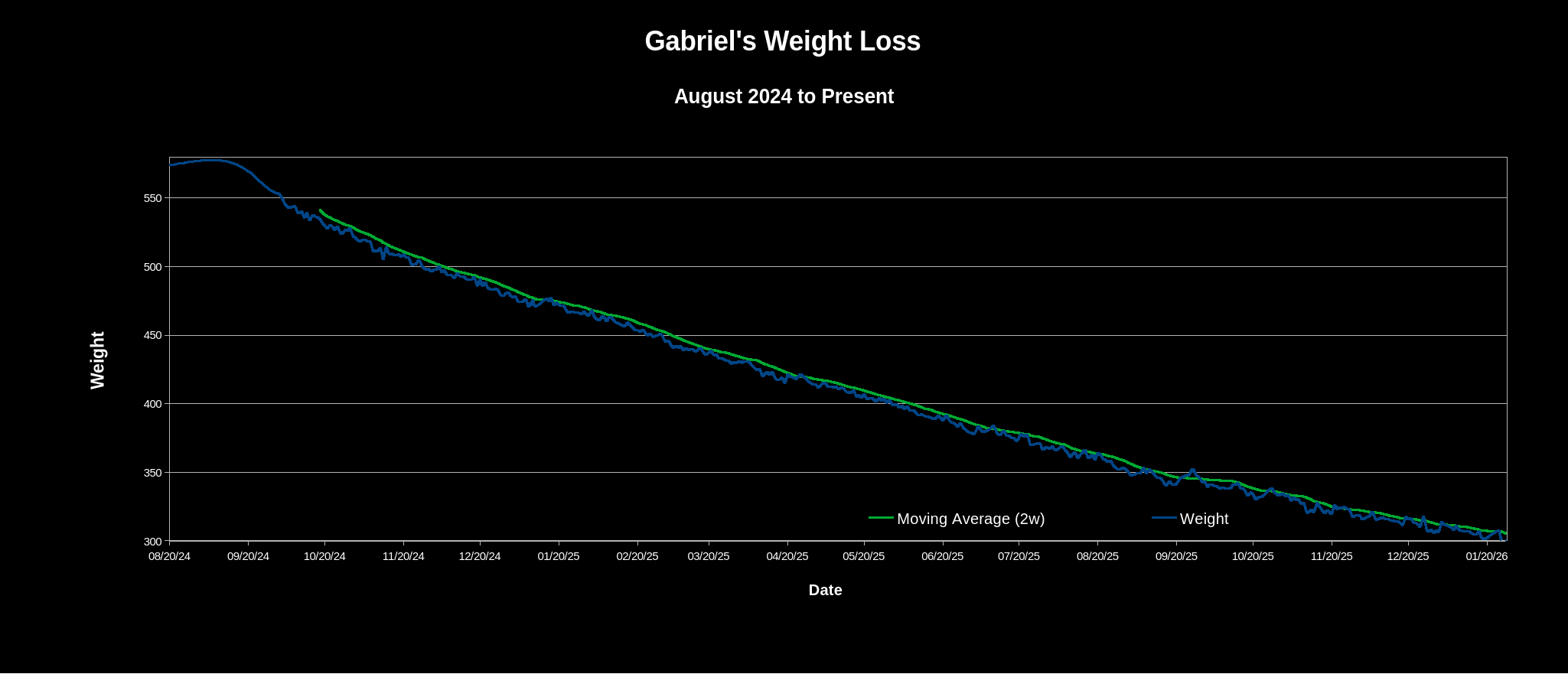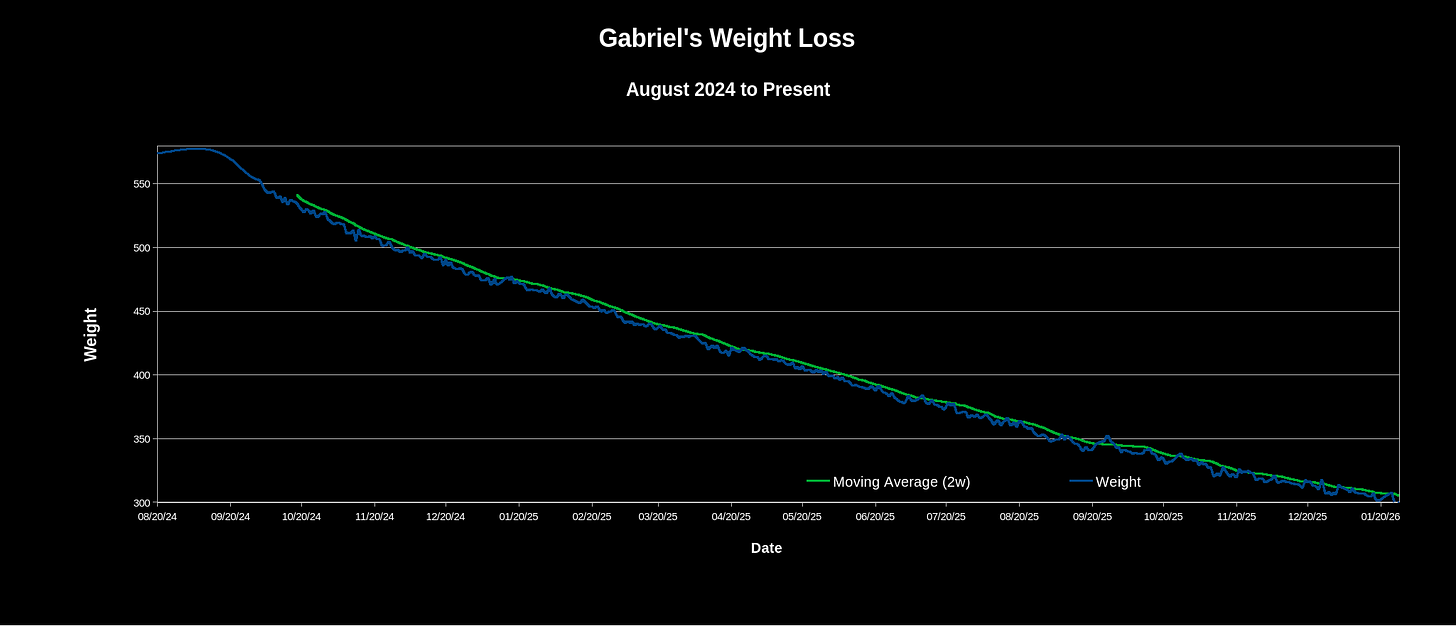 As of my latest low of 299.4 the other day, I’ve lost just over 276 pounds from my highest recorded weight in September of 2024. It is a genuinely surreal feeling and I find myself asking “where did it all go?” During my lifts I can see my extra skin hanging off of me and I can even feel my collar bone and calves now. Paradoxically I’m not quite used to feeling like myself again despite spending so much time at this size. I think it’s because in part I have never been as strong as I am now. Getting stronger has been a lot of fun, my latest big milestone is being able to overhead press 135lbs for 6 reps. At the gym I’m told that it’s quite an impressive feat!