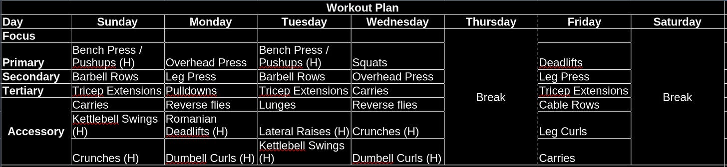 Things have been a bit difficult lately because I majorly injured my foot over a week ago. I clumsily dropped a 45lb plate on it while unloading a leg press machine. It seems I am to endure weeks of of pain for a moment of exhausted carelessness. Quite a painful lesson in diligent and careful moving of weights. Despite that, I have finished the first iteration of my 2026 exercise plan. I am already beginning to ramp up towards being able to stick to it and I am excited for the gains to come.
