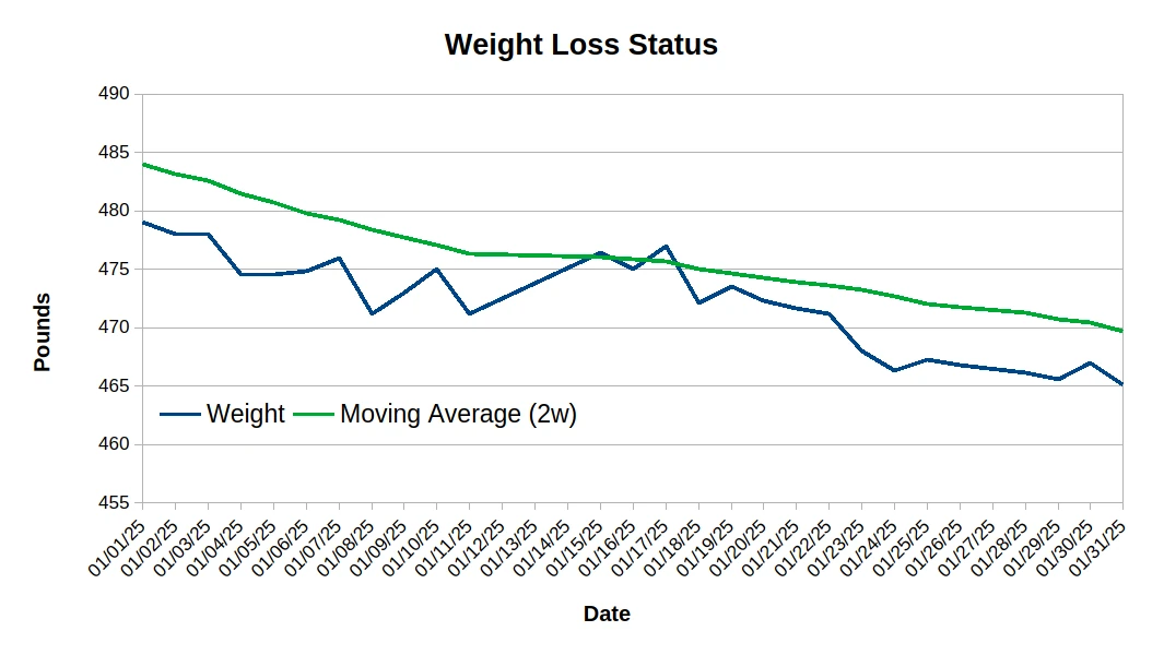 I’ve got a long way to go, but I really appreciate the encouragement and kindness I’ve received from people at the gym, and kind strangers over the Internet. I really hope to do much better in February, and I’m excited to see how well I can do. At least for now, I’m behind my annual target, but hopefully this will change as I get back in gear.