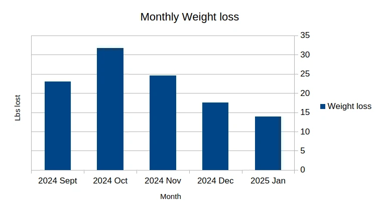 Today I went for a nice walk in the sunshine this afternoon. I reflect on how the last month has went. I’ve failed to lose more weight in January than December, but I’m still happy to be down ~14lbs. Despite the slower rate than I would like, I’m feeling very optimistic about the next few months. I’ve noticed successes in other areas, especially controlling food intake and walking regularly.